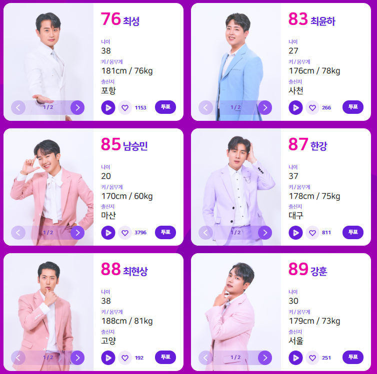 투표는 ID당 1일 1회에 걸쳐 참가자 7명(필수) 에게 투표하실 수 있습니다.